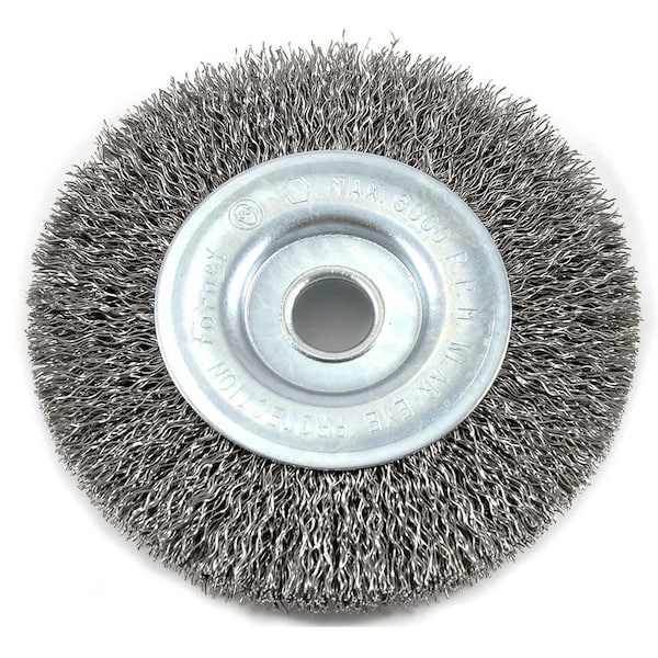This 4in crimped wire wheel brush is ideal for cleaning and blending surfaces, removing light burrs, paint and corrosion. Used for light to medium duty brushing action. For use with a bench, pedestal or straight grinder.Specifications:Diameter: 4inArbor: 1/2inWire Size: .012in .304 mmMax RPM: 6,000