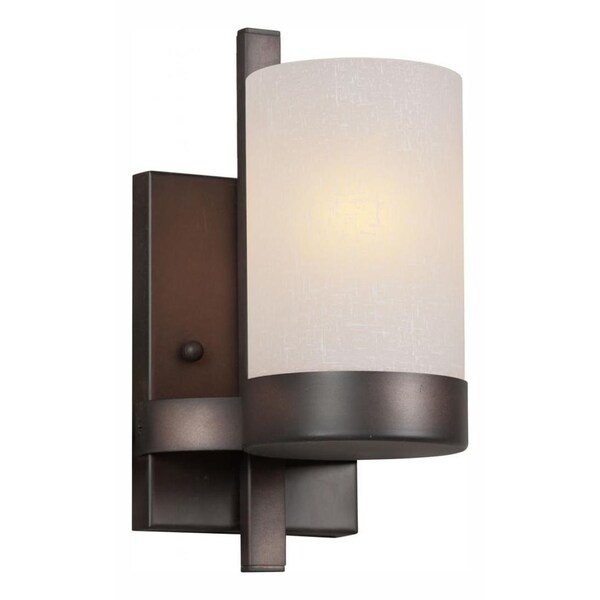 One Light Antique Bronze White Linen Glass Wall Light (Discontinued)