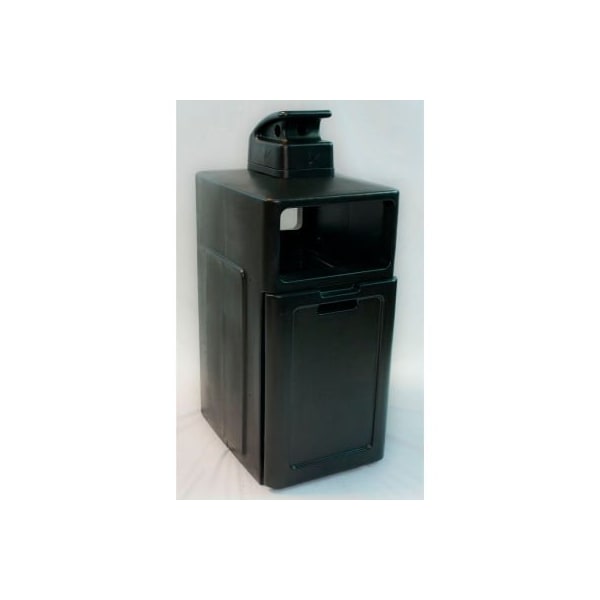 Forte 42 gallon enclosed top waste container w/ ashtray, gray - 8002840 waste container with covered top mounted ashtray. Pull out bin for easy maintenance. Easy top-mounted ashtray keeps unsightly ash debris covered and has waste disposal opening on two sides. Liner sold separately.
