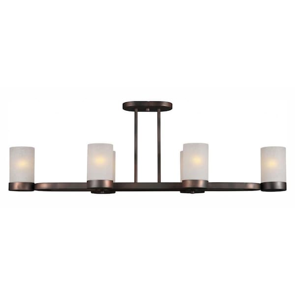 Six Light Antique Bronze White Linen Glass Candle Chandelier (Discontinued)