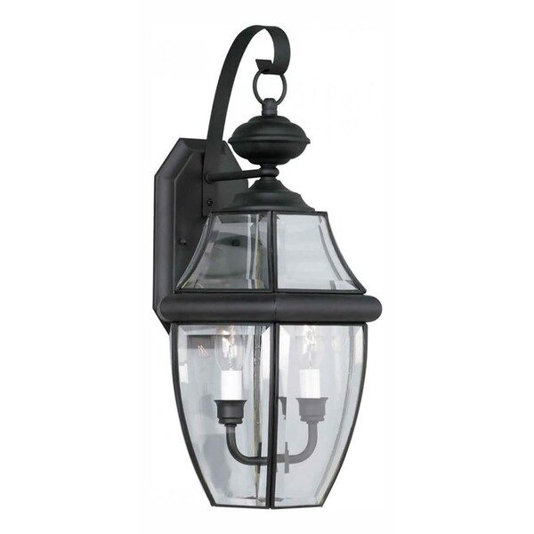 Two Light Black Clear Beveled Panels Glass Wall Lantern (Discontinued)