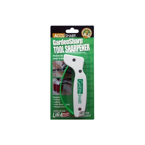 Accusharp, Gardensharp, Tool Sharpener, Designed To Sharpen Single Edged, Hard To Sharpen Items Lawnmower Blades, Pruning Shears, Limb Loppers, Hoes, Shovels, Scythes, All Can Be Sharpened To A Razor Edge Quickly, Easily, The Full Length Finger Guard Protects Fingers While The Reversible Diamond Hone Tungsten Carbide Blades Puts Your Cutting Edge In Good As New Condition, Will Not Rust, Can Be Cleaned With Soap, Water Or In The Dishwasher