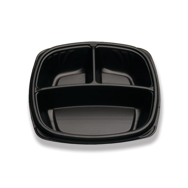 Forum 9 3 Compartment Black Deep Square Base Container, PK300
