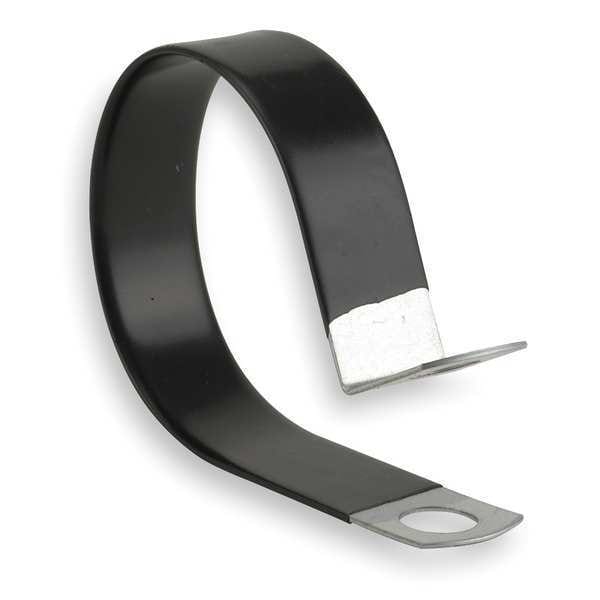 Loop Clamp, Cushioned Cable Clamp, Vinyl Dipped, Galvanized Steel, Cable Clamping Dia. 2 in, Mounting Hole Dia. 0.5313 in, Clamp Thickness 0.047 in, Clamp Band Width 1 in, Black, PVC Cushion Type, Galvanized PVC Coated Clamp Finish, Temp. Range (F) -25 to +160, PVC Coating Material