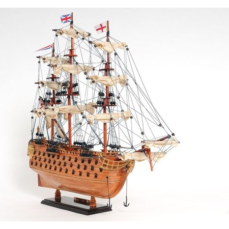 30" Wood Brown Solid Wood Hand Painted HMS Victory Medium Open Front Display Case Model Boat