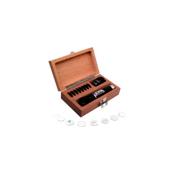 FOWLER® 10X POCKET OPTICAL COMPARATOR SET WITH ILLUMINATOR FOWLER'S 10X POCKET OPTICAL COMPARATOR SET MAGNIFIES IMAGES WHICH ARE SHARP, UNDISTORTED AND ABERRATION FREE. CONVENIENT FOR CHECKING ANGLES, THREAD MEASUREMENTS, HOLE SIZES, AS WELL AS PHOTO ENGRAVING, ETCHING AND MANY MORE APPLICATIONS. THE ILLUMINATOR ATTACHMENT ASSISTS WHERE ADDITIONAL LIGHT IS REQUIRED. THE OPTICAL COMPARATOR, ILLUMINATOR AND THE NINE RETICLES ARE PACKAGED IN A DURABLE WOODEN CASE. INTERCHANGEABLE RETICLES ALLOW MEASUREMENT OF DIAMETERS, RADIUS, ANGLES, THICKNESS, ETC. INCLUDES 9 RETICLES, 10X COMPARATOR AND ILLUMINATOR ATTACHMENT.