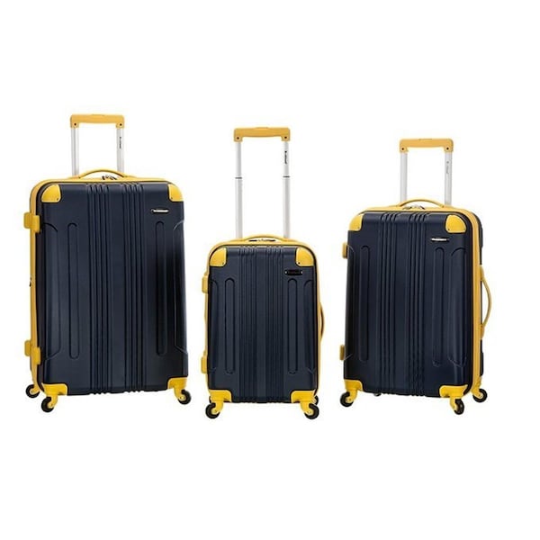 This 3 piece set is made of ABS. The major benefits of this material. it is extremely lightweight it is durable and protects the contents of your luggage. Eight multi directional spinner wheels rotate 360 degrees for easy maneuverability. This luggage allows you to pack more while avoiding the excess weight surcharges imposed by most airlines. Expandable Multi-directional spinner wheels for easy maneuverability Modern internal chrome telescoping handle with push button handle. Interior mesh and zip pocket and elastic pocket Features -100% Abs -Imported -Lightweight yet extremely durable ABS material -Multi-Directional spinner wheels -Sturdy ergonomic telescoping handle -Expandable -Includes 3 pieces -Type - Luggage Upright -Sizes - 20 in. 24 in. 28 in. -Color - Navy