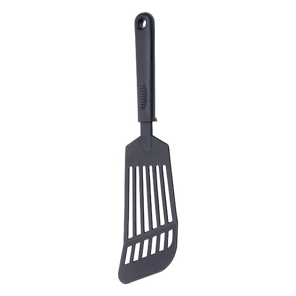 Protect your expensive non-stick cookware. Fox Run's line of nylon utensils are great for cooks who value ease, comfort, and functionality. Our Long Turner, constructed of sturdy black nylon, is high temperature heat-resistant up to 400°F and safe for all non-stick surfaces. It features a long slotted head, which enables grease to drip through back into pans. Perfect for lifting, serving, removing cookies from baking sheets, flipping burgers and steaks, and much more. The comfortable handle is equipped with a thumb grip and a hanging hole for convenient storage. Simply place in the dishwasher for easy clean-up. Prevent scratches and damages to your cookware in style.