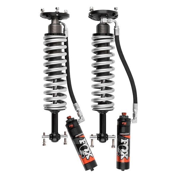 Adjustable Valving; Ride Height Adjustable 2-1/2 To 3 Inch Lift; Single Flat End Coil Spring; Black And Silver; With Remote Reservoir/ Shock Absorber/ Adjustment Collar/ Adjustment Knob/ Spring; Set Of 2