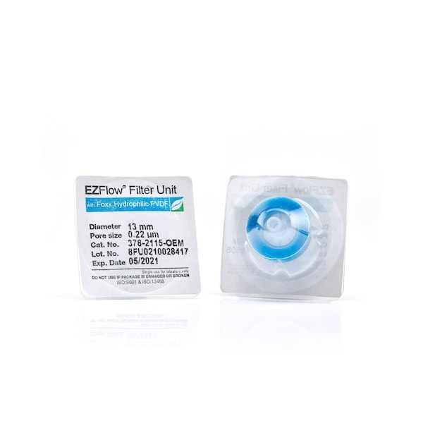 EZFlow Syringe Filter, 0.45um Hydrophilic PVDF, 13mm, Sterile, 100PK