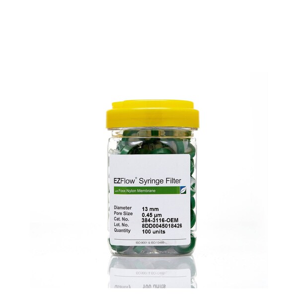 EZFlow Syringe Filter-Sample Prep, 0.22um Hydrophilic PVDF, 25mm, 100PK