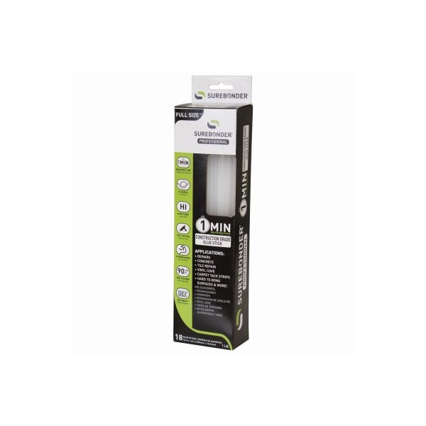 18 Pack, Construction Grade Hot Melt Glue Sticks, 1 Minute Working Time With Instant Bond, Great For Repairs, Concrete, Tile Repair, Vinyl Cover, Carpet Tack Strips, Hard To Bond Surfaces More, 90 Linear Feet Per LB Box, Full Size 7 Of 16 Diameter