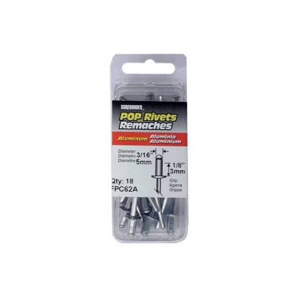 Surebonder, 18 Pack, Short Aluminum Rivet, 316 Diameter, Grip Range 063 125, Aluminum Mandrel