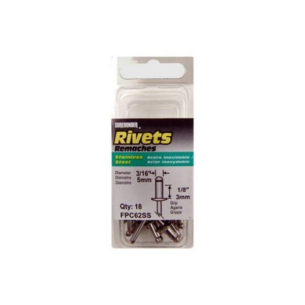 Surebonder, 18 Pack, Short Stainless Steel Rivet, 316 Diameter, Grip Range 063 125, Stainless Steel Mandrel