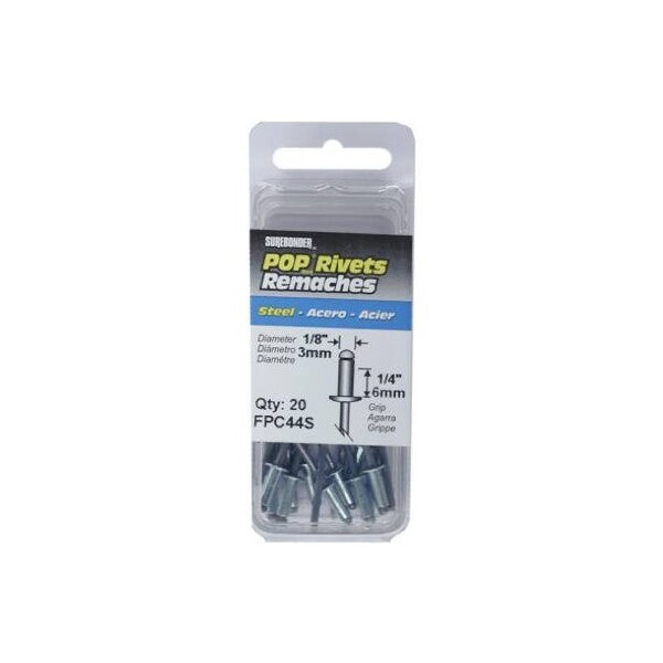 Surebonder, 20 Pack, Medium Steel Rivet, 18 Diameter, Grip Range 188 250, Steel Mandrel