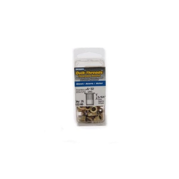 632 Steel Threaded Insert, 080 Grip, For Threaded Insert Tool