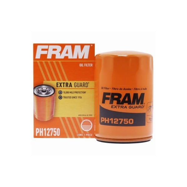 Fram PH12750 extra guard oil filter. Deliver advanced engine protection for everyday drivers who perform routine oil changes at OE original equipment recommended intervals. Engineered for conventional and synthetic motor oil Extra Guard offers proven engine protection for up to 10000 miles