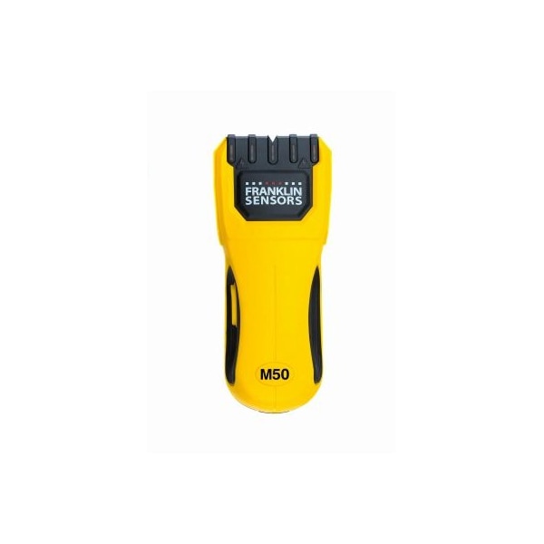 ProSensor M50 professional stud finder 5-sensors and 5-LEDs yellow The M50 shows the center and edges of stud simultaneously. 1.5 Detection Depth. Accurate and easy to use. To operate just press and hold the button to instantly begin scanning for studs. Also features live electrical warning.