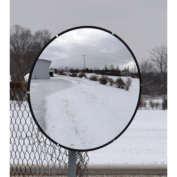 Convex Mirror, Mirror Style Convex Mirror, Mirror Shape Round, Rim Material Rubber, Mirror Material Acrylic, Backing Material Plastic, Diameter 36 in, Length Not Applicable, Width Not Applicable, Viewing Angle 180 Degrees , Mounting Bracket Type Swivel Mounting C Bracket, Approximate Viewing Distance 36 ft, Legend Not Applicable, Includes Mounting Hardware Yes, Mirror Environment Outdoor, Dome Height Not Applicable, Mounting Location Wall/Ceiling, Panel Length Not Applicable