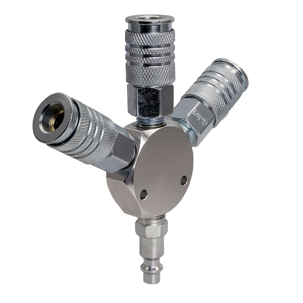 PS3WAM 3-Way 1/4" Universal Steel Air Manifold with Quick Connect Coup