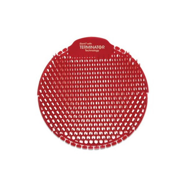 Slant7 Urinal Screen with Terminator Technology stops odors before they start by killing the bacteria that create the odors. This results in a more hygienic restroom by preventing urine and bacteria from spreading outside the urinal as well as outside the restroom. Created using a double-sided slant design, uniquely slanted fingers provide superior splash prevention, prevent installation error, and keep the restroom clean. The 30-day screen offers consistent and powerful fragrance throughout the whole month. The screens come in a resealable bag for greater convenience and freshness. Contains reminder tabs for worry-free replacement. Deodorizer Type: Urinal Screen; Scent: Evergreen; Colors: Red.