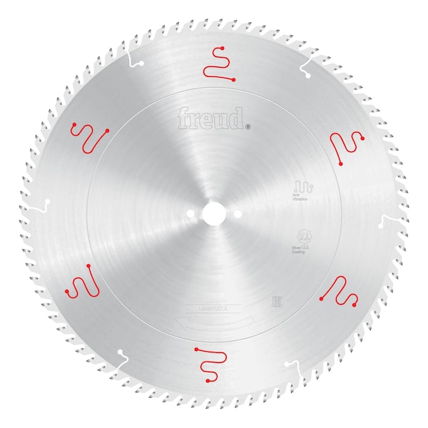Freuds innovative X-series of LSB Panel Blades LSB-X offers ground-breaking designs to provide superior performance,extremely precise cuts and virtually no-run out for up to 2X the cutting performance and cutting life of standard LSB Panel Blades. Freuds specially formulated TiCo carbide along with Silver I.C.E. Industrial Cooling Element coating enables the blade to slice through materials, maximizing the blades cutting life and providing a superior quality finish. The Ultimate Precision Grinding Process provides the highest possible tolerance for precise, accurate cuts while the advanced Anti-Vibration Design combined with unmatched accuracy in saw blade flatness make this the quietest panel saw blade on the market.