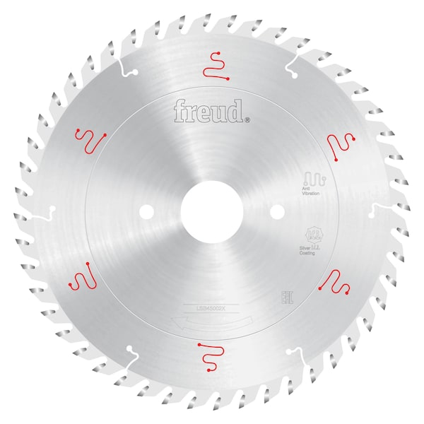Freuds innovative X-series of LSB Panel Blades LSB-X offers ground-breaking designs to provide superior performance,extremely precise cuts and virtually no-run out for up to 2X the cutting performance and cutting life of standard LSB Panel Blades. Freuds specially formulated TiCo carbide along with Silver I.C.E. Industrial Cooling Element coating enables the blade to slice through materials, maximizing the blades cutting life and providing a superior quality finish. The Ultimate Precision Grinding Process provides the highest possible tolerance for precise, accurate cuts while the advanced Anti-Vibration Design combined with unmatched accuracy in saw blade flatness make this the quietest panel saw blade on the market.