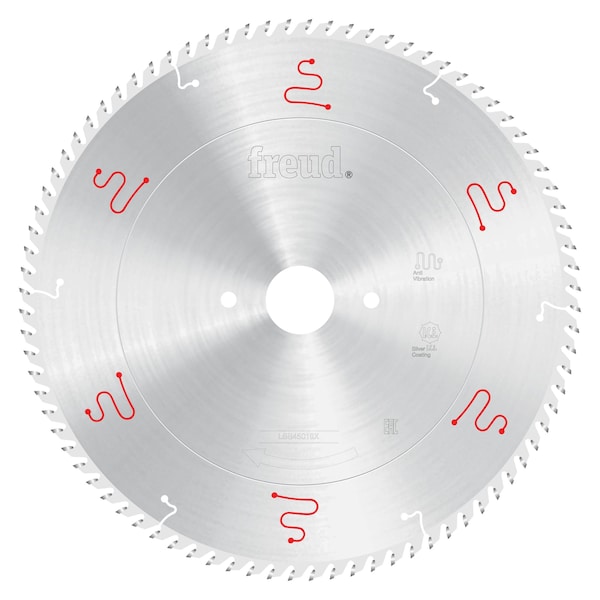 Freuds innovative X-series of LSB Panel Blades LSB-X offers ground-breaking designs to provide superior performance,extremely precise cuts and virtually no-run out for up to 2X the cutting performance and cutting life of standard LSB Panel Blades. Freuds specially formulated TiCo carbide along with Silver I.C.E. Industrial Cooling Element coating enables the blade to slice through materials, maximizing the blades cutting life and providing a superior quality finish. The Ultimate Precision Grinding Process provides the highest possible tolerance for precise, accurate cuts while the advanced Anti-Vibration Design combined with unmatched accuracy in saw blade flatness make this the quietest panel saw blade on the market.