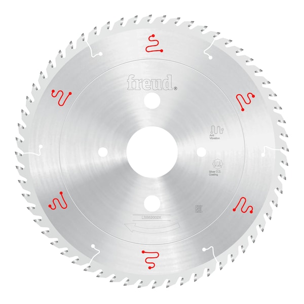 Freuds innovative X-series of LSB Panel Blades LSB-X offers ground-breaking designs to provide superior performance,extremely precise cuts and virtually no-run out for up to 2X the cutting performance and cutting life of standard LSB Panel Blades. Freuds specially formulated TiCo carbide along with Silver I.C.E. Industrial Cooling Element coating enables the blade to slice through materials, maximizing the blades cutting life and providing a superior quality finish. The Ultimate Precision Grinding Process provides the highest possible tolerance for precise, accurate cuts while the advanced Anti-Vibration Design combined with unmatched accuracy in saw blade flatness make this the quietest panel saw blade on the market.