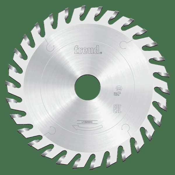 Scoring sawblades for cutting coated panels on sizing machines.