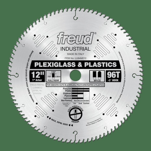 Plexiglass and Plastics. Depth of cut (1/4" to 1-5/8").