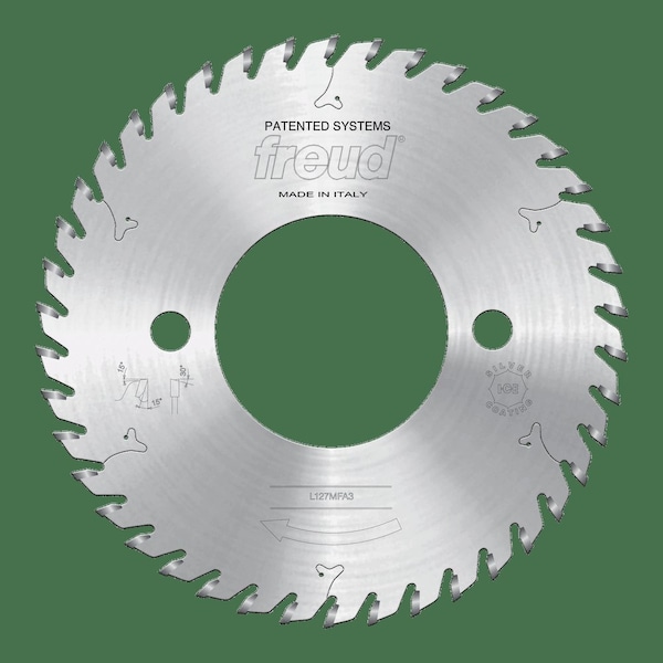Scoring sawblades for cutting coated panels on sizing machines.