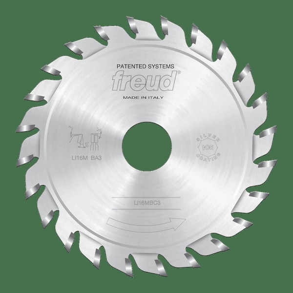 Scoring sawblades for cutting coated panels on sizing machines.