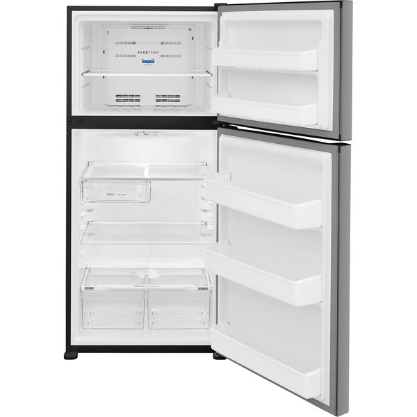 The 18.3 cubic feet of interior storage space is designed with your family in mind. Full-Width glass shelving, a sliding half-Width deli drawer, and spacious door bins makes organization easy. Frigidairefts EvenTemp cooling system optimizes airflow to keep a consistent temperature throughout your refrigerator by preventing warm spots and unwanted freezing. The Humidity-Controlled Crisper Drawers keep produce fresher longer The Auto-close doors ensure that your food does not accidentally spoil from an ajar door