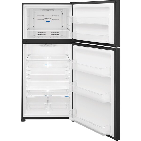 The Frigidaire 20 cubic foot top freezer refrigerator fits in the same sized cutout as a traditional 18 cu. ft. model. This refrigerator features the EvenTemp Cooling System, precise temperature control which keeps food at one ideal temperature. Spacious interior storage options include a full-Width deli drawer, generous door bins, and a full-Width glass freezer shelf