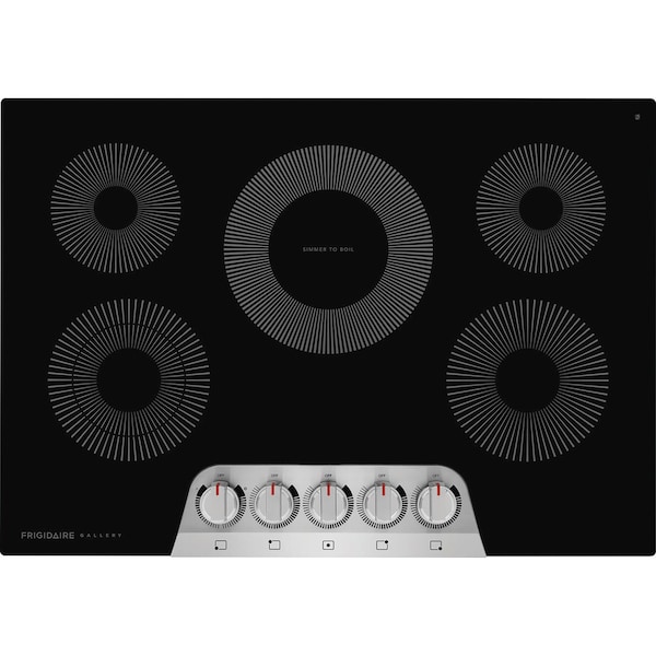 The Frigidaire Gallery 30-in Electric Cooktop provides delicious results every time with the EvenTemp Element that delivers consistent heat across the elements surface, reducing hot and cold spots in your pan. Enjoy ultimate cooking flexibility with powerful elements designed to meet all of your cooking needs, including a Dual Expandable Element and Keep Warm Zone. Plus, these cooktops feature bright, backlit LED knobs that light up when the cooktop is in use, conveniently placed on the front of the cooktop