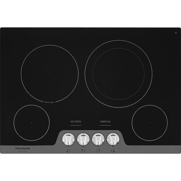 Expand your cooking needs with the 30-in Electric-Built-In Cooktop that has a powerful 3,200-watt element allowing you to boil water in less than three minutes. Express-Select Controls allow you to easily go from warm to boil. The wasy-to-use front controls located on the front of the cooktop allow you to adjust the temperature without reaching over hot items. More easy-to-use features include a hot surface indicator, to inform you when the surface is hot, and a ceramic glass build, for a more beautiful cooktop thatfts also easy to clean
