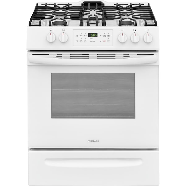 Upgrade your kitchen with the Frigidaire 30-in. Front Control Freestanding Gas Range and get the look of a built-on range, with the fit of a traditional freestanding range. The Frigidaire front-control freestanding range easily fits into 30-in. cutouts. Get ultimate cooking flexibility with a powerful gas cooktop that has five elements designed to handle all of your cooking needs. Get quick meals on the table faster with our 17,000 BTU burner. Water boils faster than the traditional setting. Continuous grates make it easy to move heavy pots and pans between burners without lifting. With the one-touch self clean feature your oven cleans itself - so you donftt have to. Self clean options available in 2, 3 and 4-hour cycles