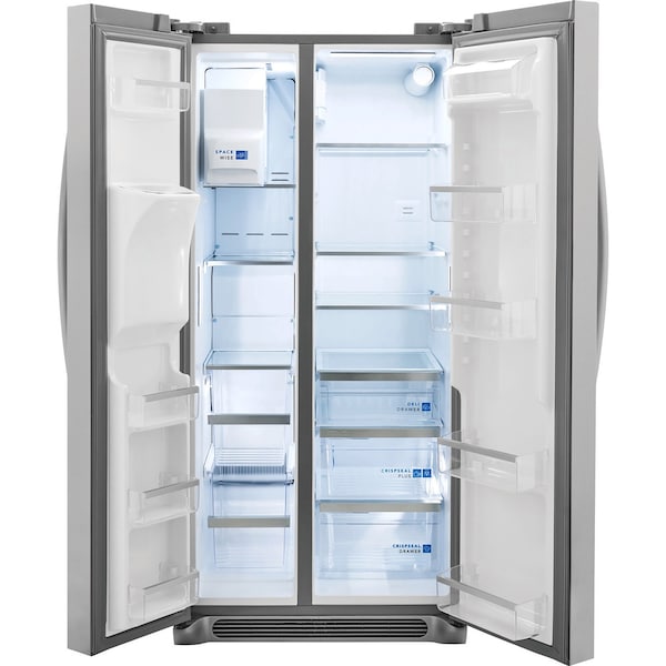 This Frigidaire Gallery 33-in Side-by-side refrigerator offers our advanced CrispSeal Plus Crisper. This crisper keeps produce fresh with a seal that blocks out dry air, plus an added filter reduces the gas that causes produce to ripen faster. It also features our EvenTemp Cooling System which keeps your food fresh by reacting quickly to temperature fluctuations and constantly circulates cold air throughout the fresh food and freezer compartments, ensuring a consistent cool from top to bottom