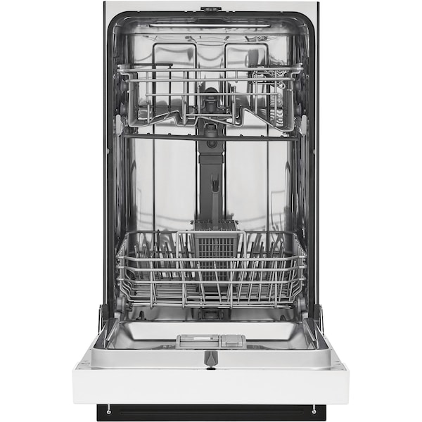 The Frigidaire 18ftft Built-In Dishwasher in White has a top and bottom rack dual spray arm system gives you a thorough clean every time. National Sanitation Foundation certified, itfts sanitize cycle removes 99.9 percent of common household bacteria. This dishwasher cleans 8 place settings in one cycle and features easy-to-use cleaning cycle options for your different cleaning needs including Energy Saver, Heavy Wash, and Rinse Only