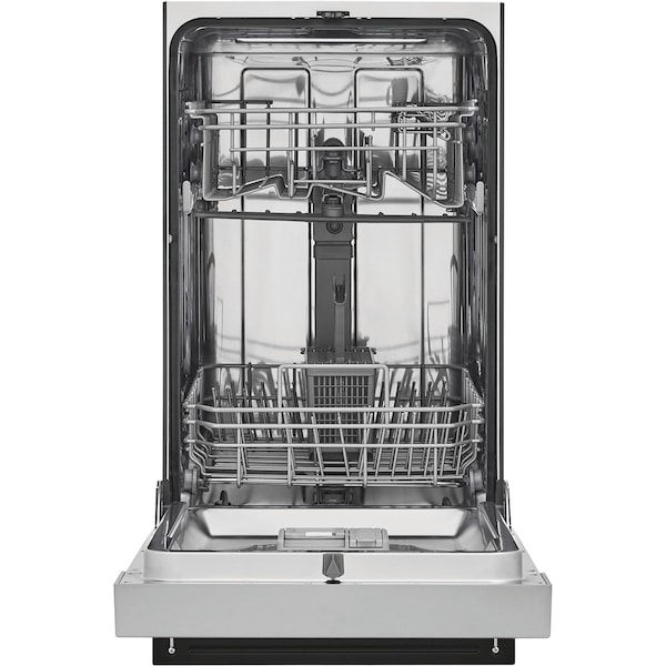 The Frigidaire 18ftft Built-In Dishwasher in Stainless Steel has a top and bottom rack dual spray arm system gives you a thorough clean every time. National Sanitation Foundation certified, itfts sanitize cycle removes 99.9 percent of common household bacteria. This dishwasher cleans 8 place settings in one cycle and features easy-to-use cleaning cycle options for your different cleaning needs including Energy Saver, Heavy Wash, and Rinse Only
