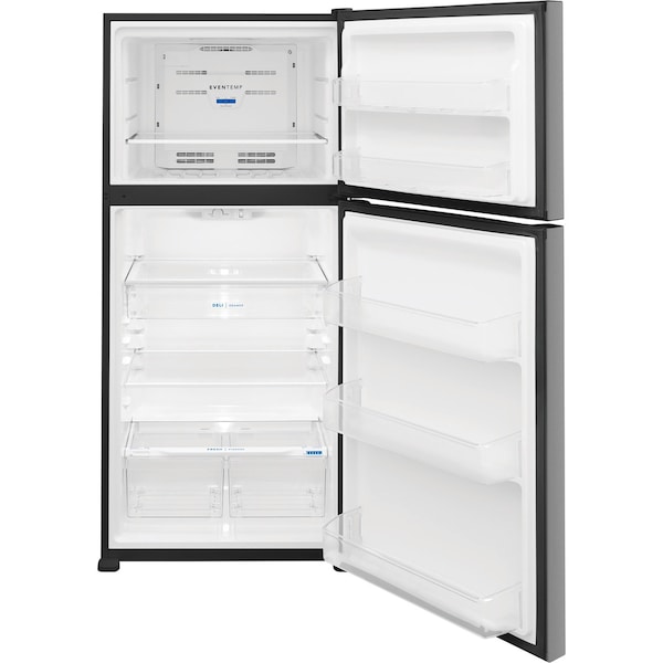 The Frigidaire 20 cubic foot top freezer refrigerator fits in the same sized cutout as a traditional 18 cu. ft. model. This refrigerator features the EvenTemp Cooling System, precise temperature control which keeps food at one ideal temperature. Spacious interior storage options include a full-width deli drawer, generous door bins, and a full-width glass freezer shelf