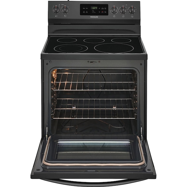 The Frigidaire 30-inch Freestanding Electric Range features Ready-Select controls enabling you to select options or control cooking temperature with easy-to-use controls. The large capacity oven gives you room to cook more at once and the extra-large 12-inch element gives you space for lager pots and pans. As an extra measure, the oven will automatically shut off after 12 hours. Plus a convenient drawer gives you extra storage space in your kitchen