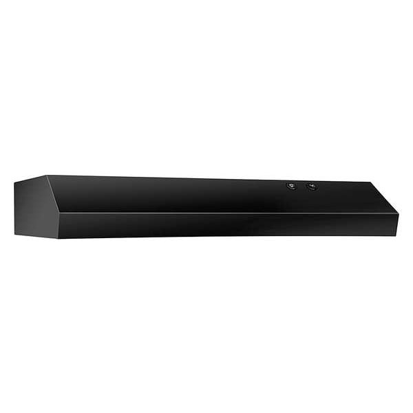 Range Hood, Airflow Capacity 200 cfm, Color Black, Duct Collar Connection 3 1/4 in x 10 in, 7 in dia., Duct Shape Rectangular, Round, Material Steel, Maximum Airflow Capacity 220 cfm, Maximum Noise Level 8 sones, Mounting Type Standard, Number of Light Fixtures 1, Number of Speeds 2, Overall Depth 18 5/8 in, Overall Height 5 in, Overall Width 30 in, Hood Style Under Cabinet, Nameplate Voltage 120 V AC, Duct Diameter 7 in, Duct Direction Vertical/Horizontal, Duct Height 10 in, Duct Width 3 1/4 in