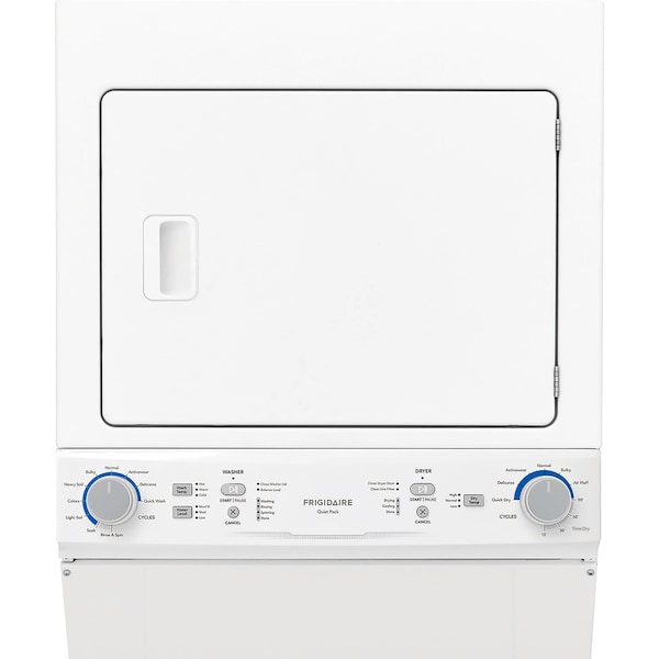The Frigidaire Washer and Dryer Unit is the perfect laundry combination for small spaces. This stacked combo includes a 3.9-cu. ft. capacity washer, and large 5.6-cu. ft. capacity dryer. Choose from multiple preset cycle options to customize each load of laundry. Integrated cycle lights allow you to check the status of each load of laundry at a glance. This unit comes in a sleek white exterior finish with a stainless steel interior drum