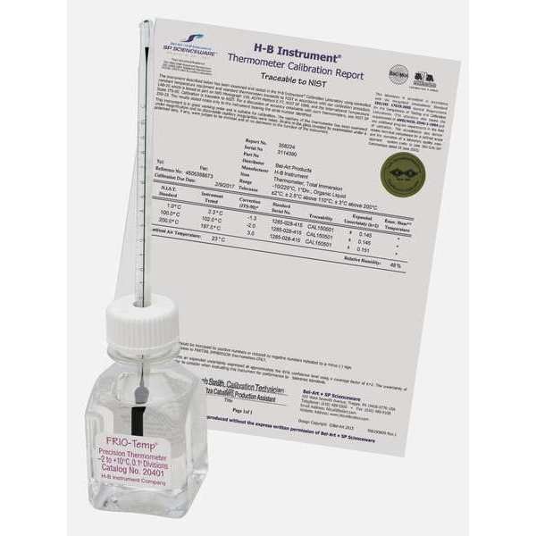 Bottle Thermometer, -2 Degrees to 10 Degrees C, Desk, 200 mm Scale Length, Thermowell Material plastic, Colourless, 0.1 Degrees C Graduations, Liquid-in-Glass