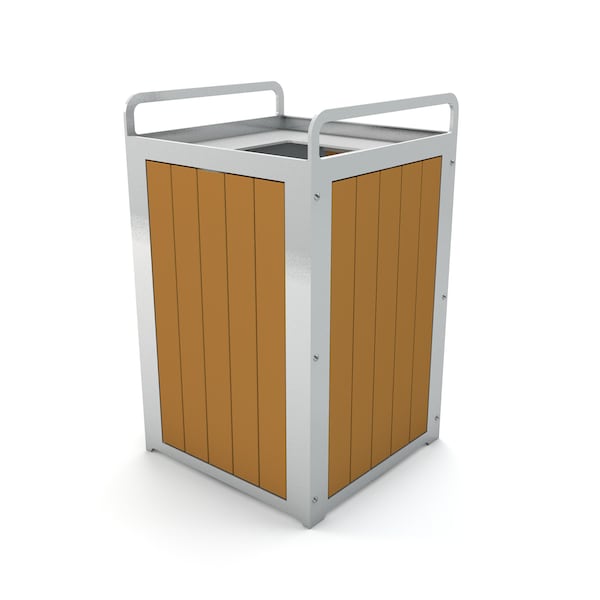 Cedar 32 Gallon Plaza Receptacle with Silver Frame