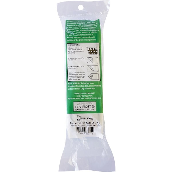 Outdoor furniture re-webbing is the solution to preserving your webbed lawn chairs. The heavy gauge webbing is waterproof and fade resistant. Its very easy to work with. It allows for easy restoration and repair of old faded frayed and damaged woven lawn chair or lounger. Finished furniture appears new again.