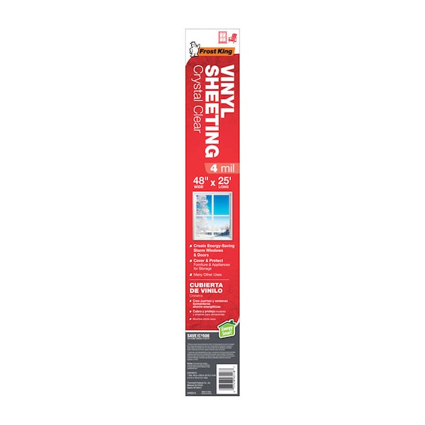 Frost King's Crystal Clear Vinyl Sheeting is ideal for making moisture-proof indoor storm windows and doors. It can also be used to cover, protect and store furniture, appliances, machinery and equipment..
