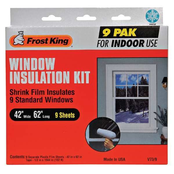 Window Insulation Kit, Width 42 in, Length 62 in, Color Clear, Material Plastic Film, For Use With Standard Windows, Mounting Tape